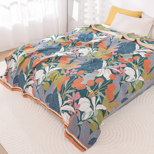 Couette confortable en gaze de coton à trois couches avec motif floral