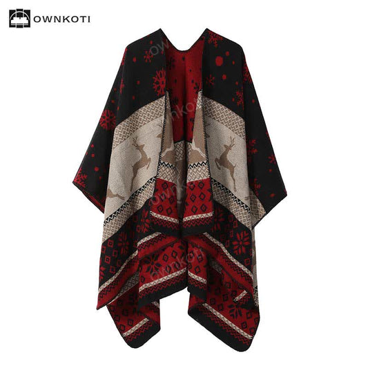 Couverture châle polaire avec capuche et gants au motif flocon de neige
