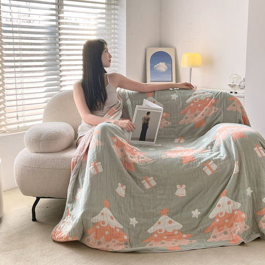 Housse de canapé réversible en chenille avec motif sapin de Noël