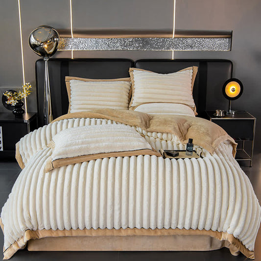 Ensemble de literie luxueux en polaire pelucheuse vintage (4 pièces)