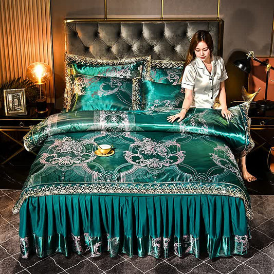 Parure de lit en satin jacquard doux et vintage (4 pièces)