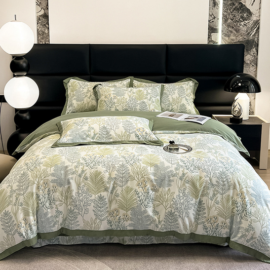 Parure de lit luxueuse en coton avec des feuilles luxuriantes (4 pièces)