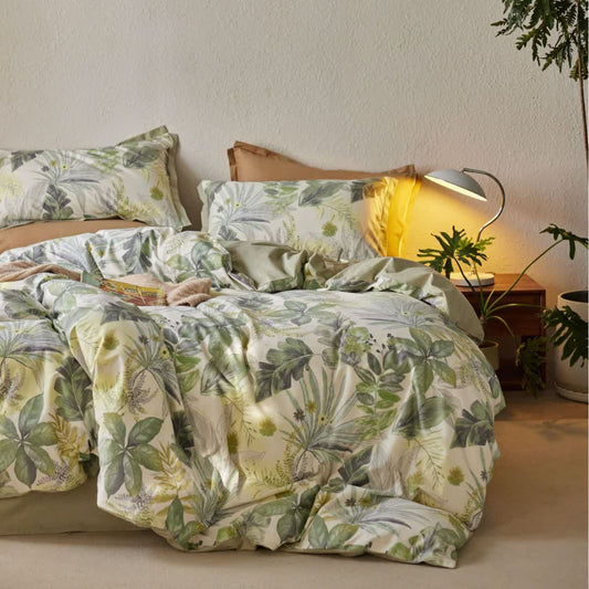 Parure de lit en coton brossé Rural Leaf (4 pièces)