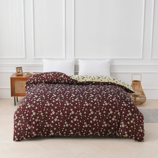 Parure de lit réversible en gaze de coton à motif floral (4 pièces)