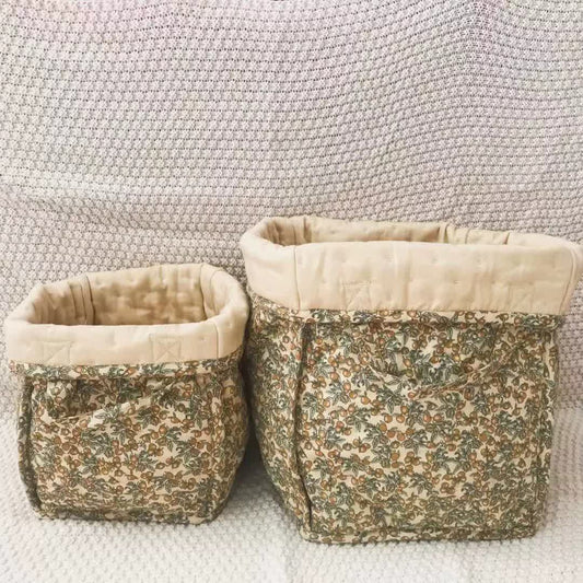 Panier de rangement en pur coton avec motif floral et poignées