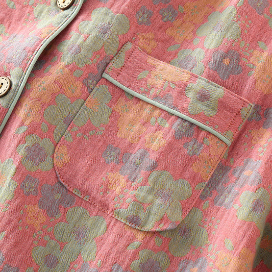Ensemble de vêtements d'intérieur en gaze de coton avec imprimé rose et devant asymétrique