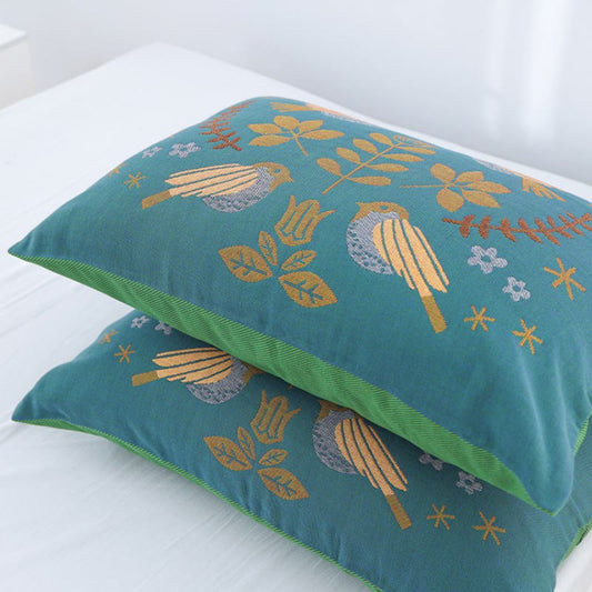 Serviette oreiller oiseau aubépine en gaze de coton (2 pièces)