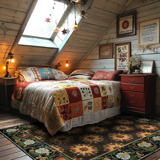 Tapis de bain antidérapant en forme de U avec motif à carreaux floraux vintage