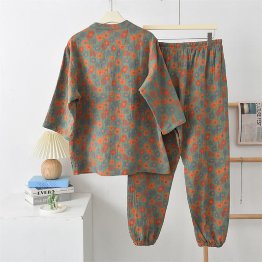 Ensemble pyjama en gaze de coton à motif feuilles rétro