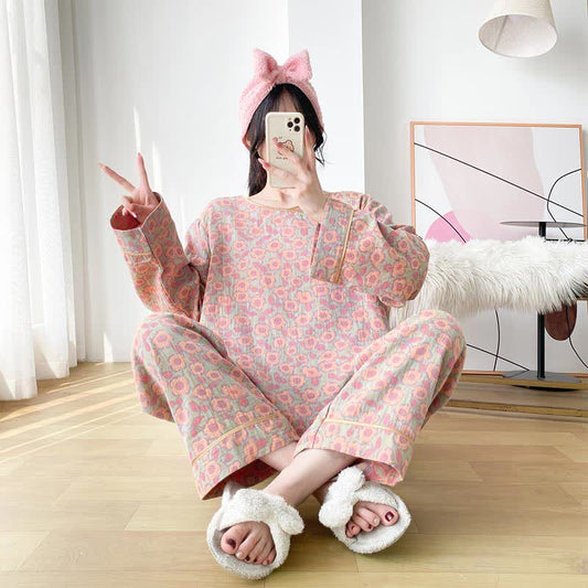 Ensemble pyjama rustique en gaze de coton à motif rose