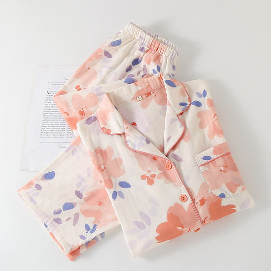 Ensemble de vêtements d'intérieur en gaze de coton fleurie