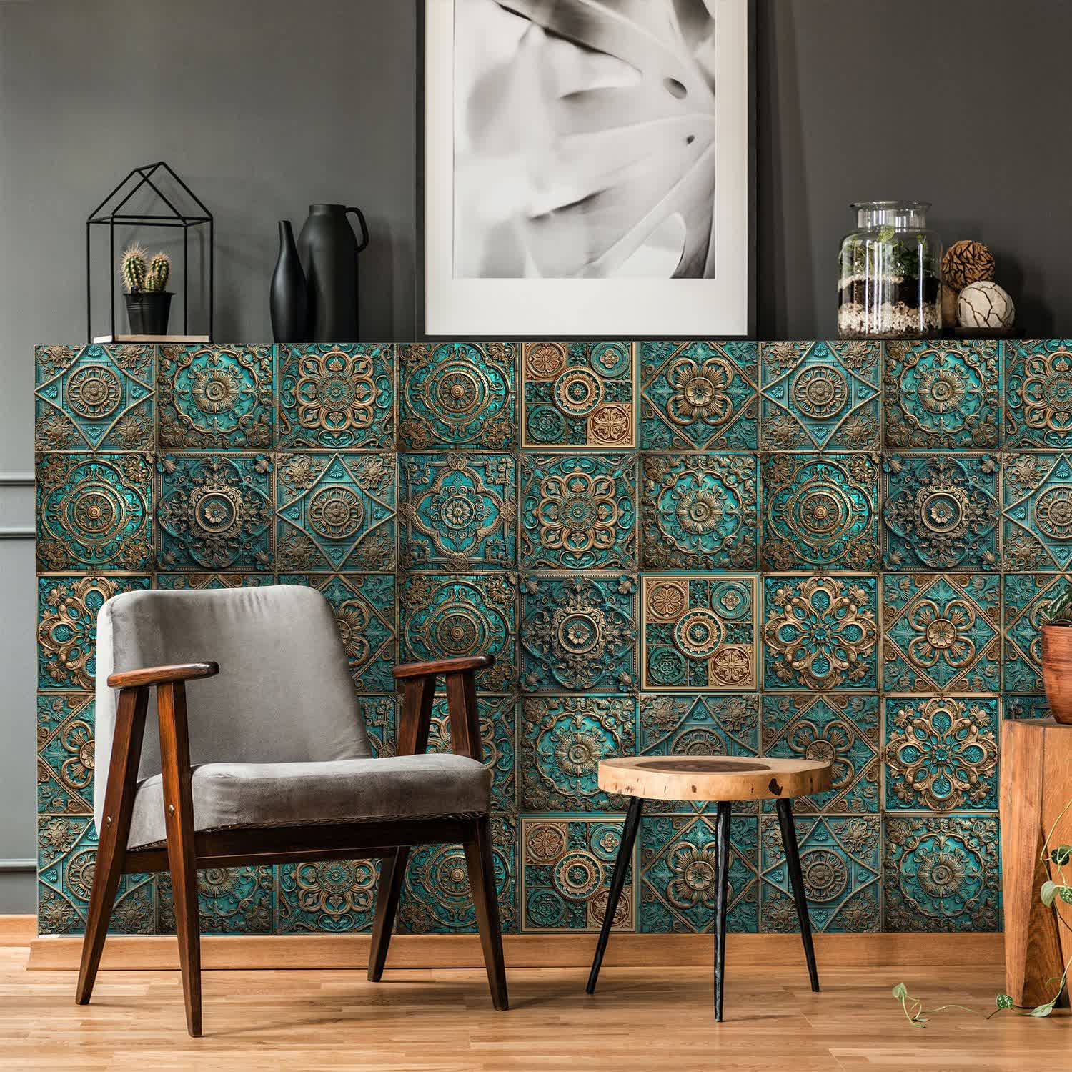 Autocollants pour carrelage imperméables de style mandala vintage (10 pièces)