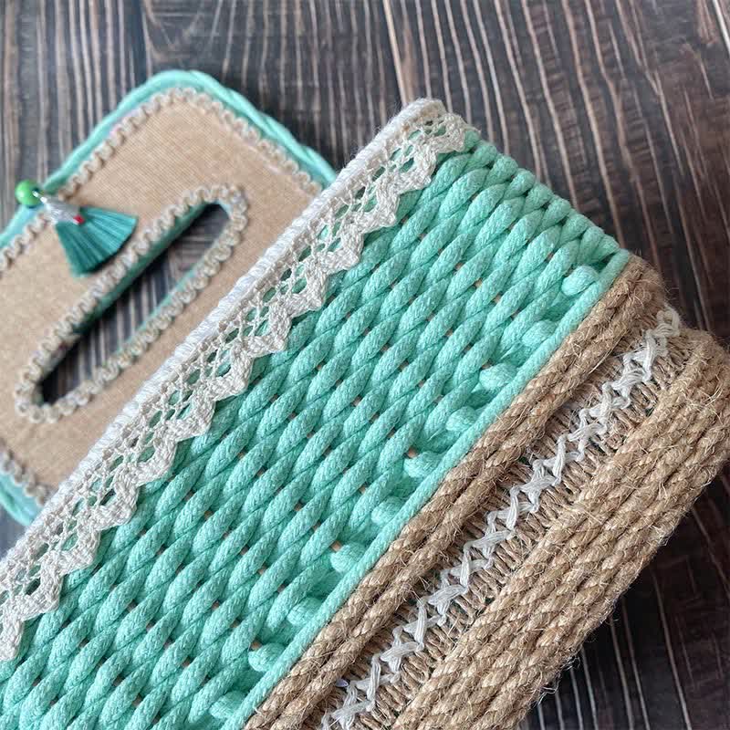 La boîte à mouchoirs tissée à la main et de manière créative dans un style campagnard est un ajout charmant et rustique à votre décoration intérieure. Fabriquée à la main à partir de matériaux de haute qualité dans un design tissé, cette boîte à mouchoirs dégage une atmosphère chaleureuse et rurale. Leur construction robuste assure la fonctionnalité, tandis que la texture unique et le style rustique ajoutent une touche de chaleur et de créativité à n'importe quelle pièce. Parfaite pour le salon, la chambre ou la salle de bain, cette boîte à mouchoirs allie fonctionnalité et charme artisanal et artistique !