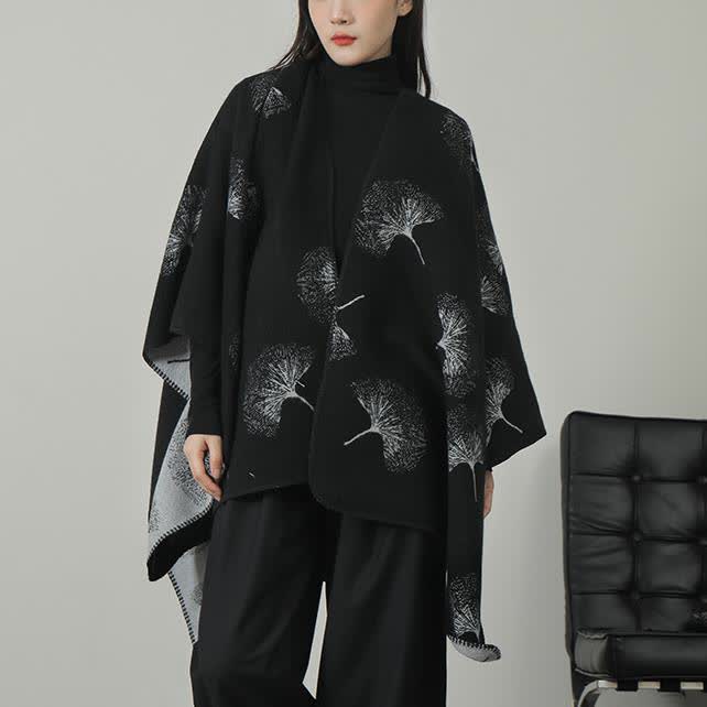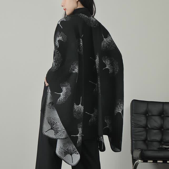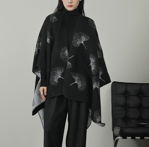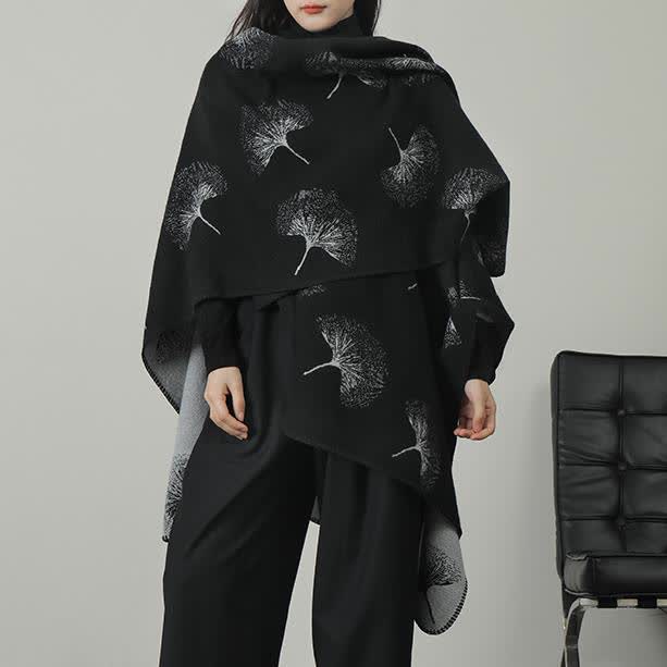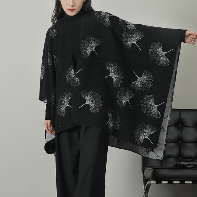 Cape châle en fibre acrylique à motif feuille de ginkgo