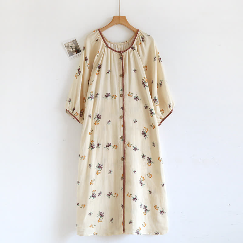 La chemise de nuit en coton respirant à manches longues avec un imprimé néflier offre un confort doux avec une touche de nature. Il est fabriqué en coton doux et respirant, présente un charmant imprimé de fruits de néflier et des manches longues, parfait pour se détendre confortablement à tout moment de l'année.