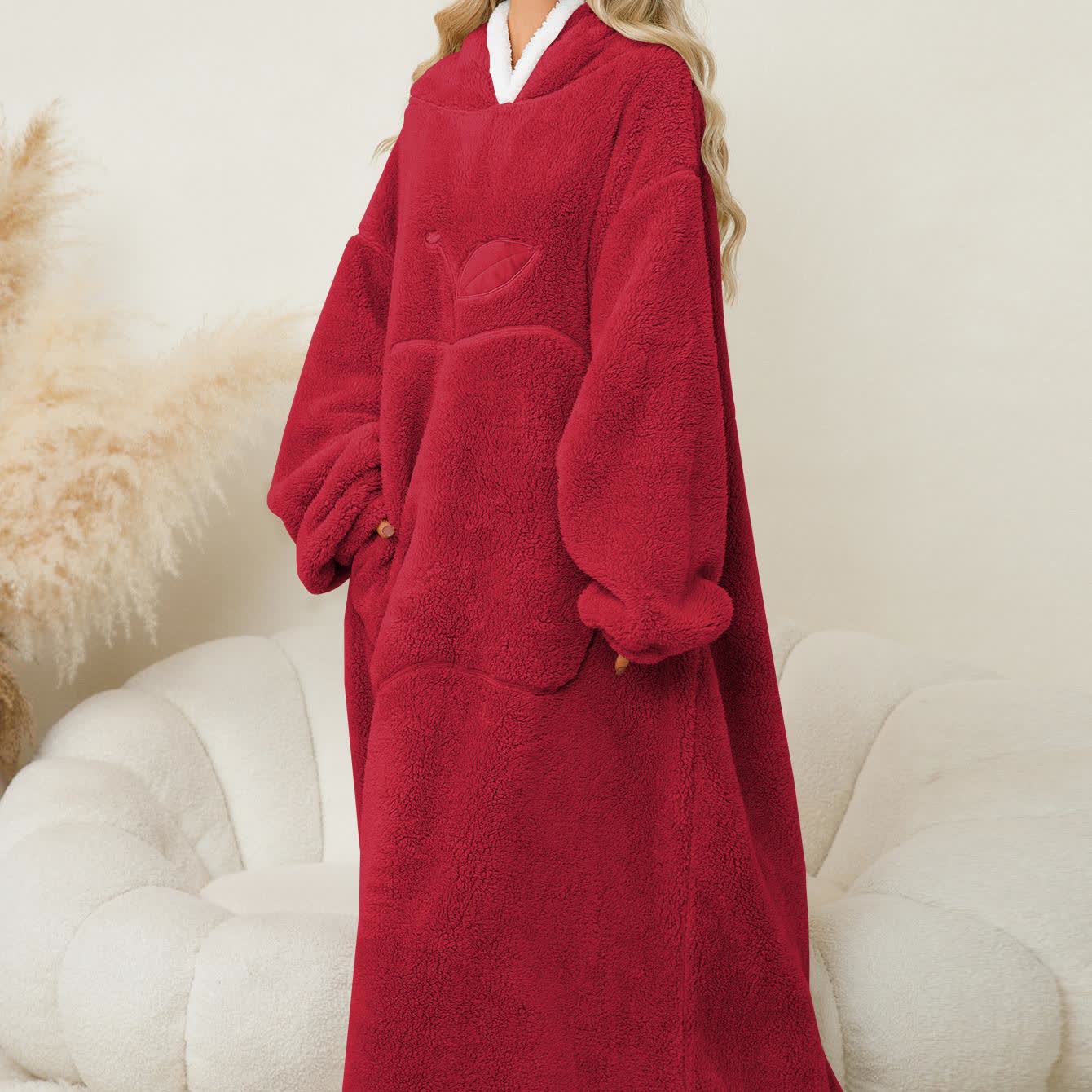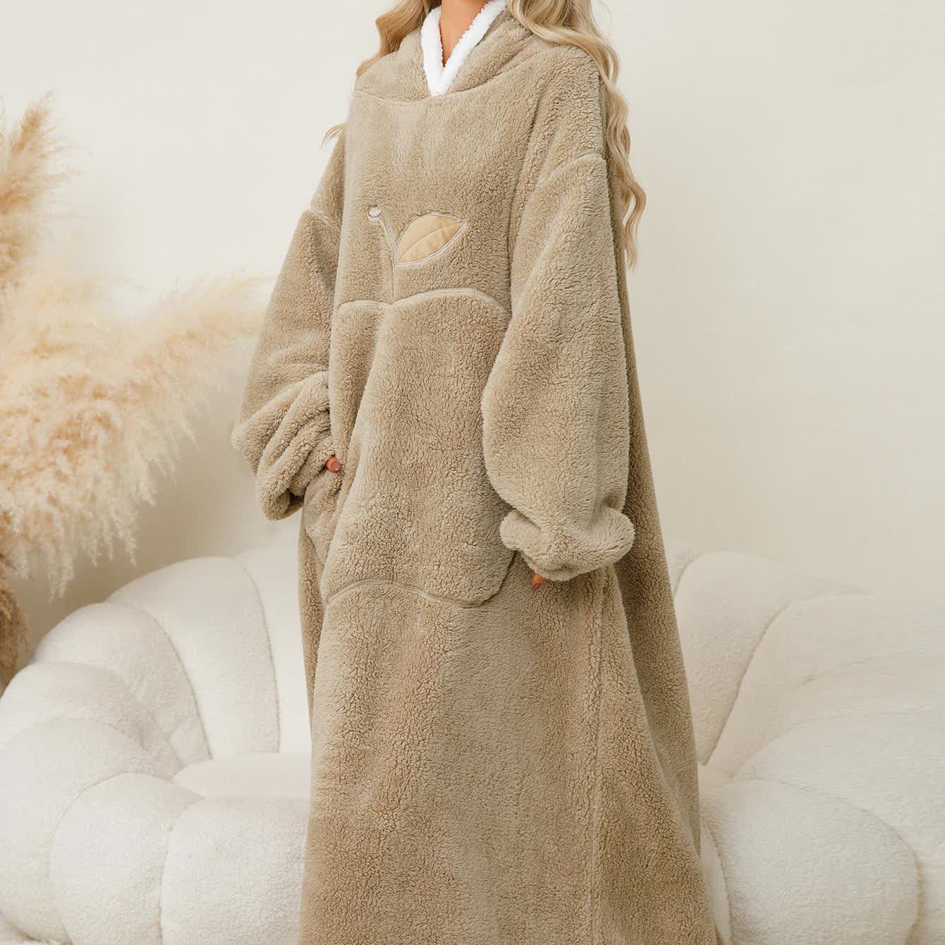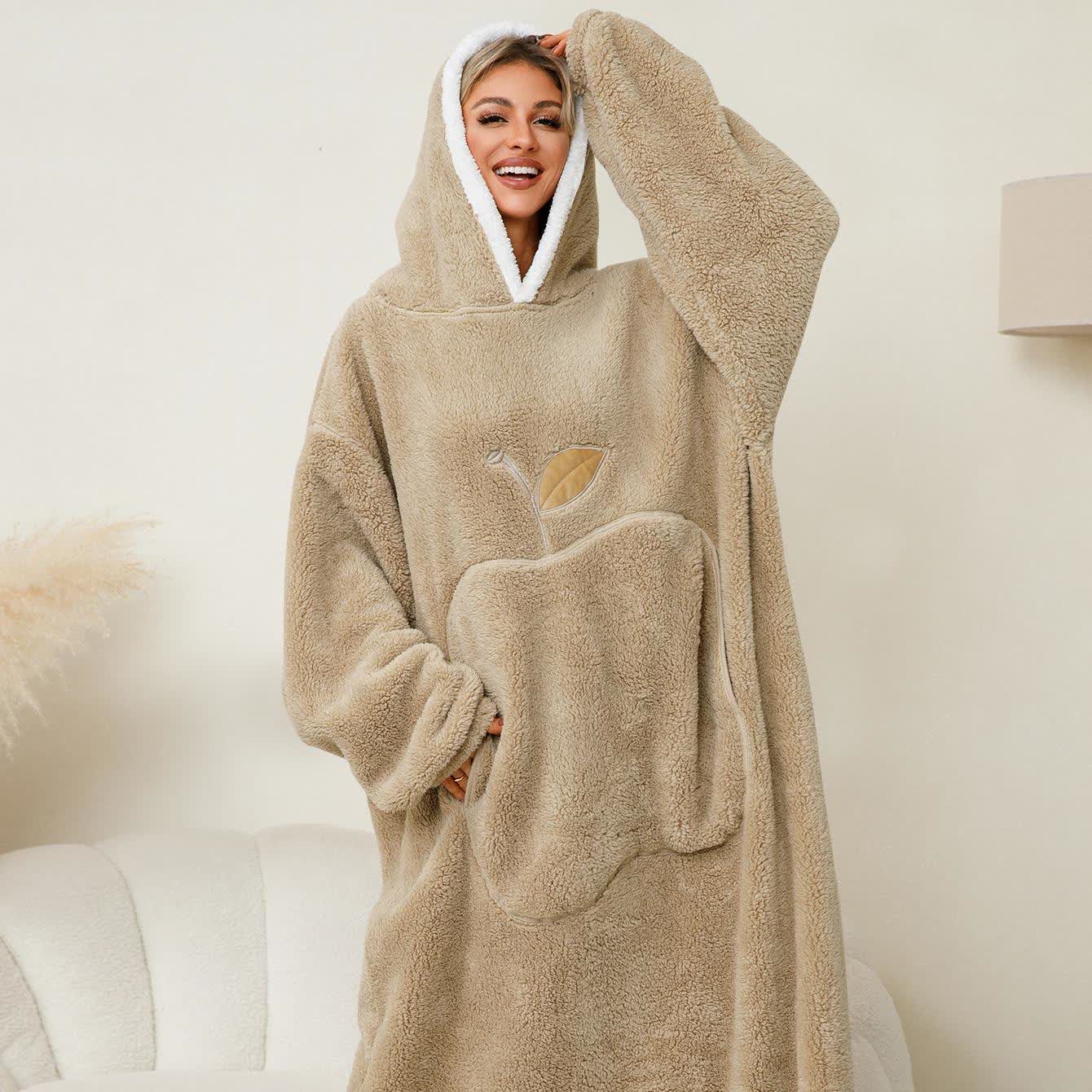 Chemise de nuit en flanelle jacquard avec capuche à motif pomme