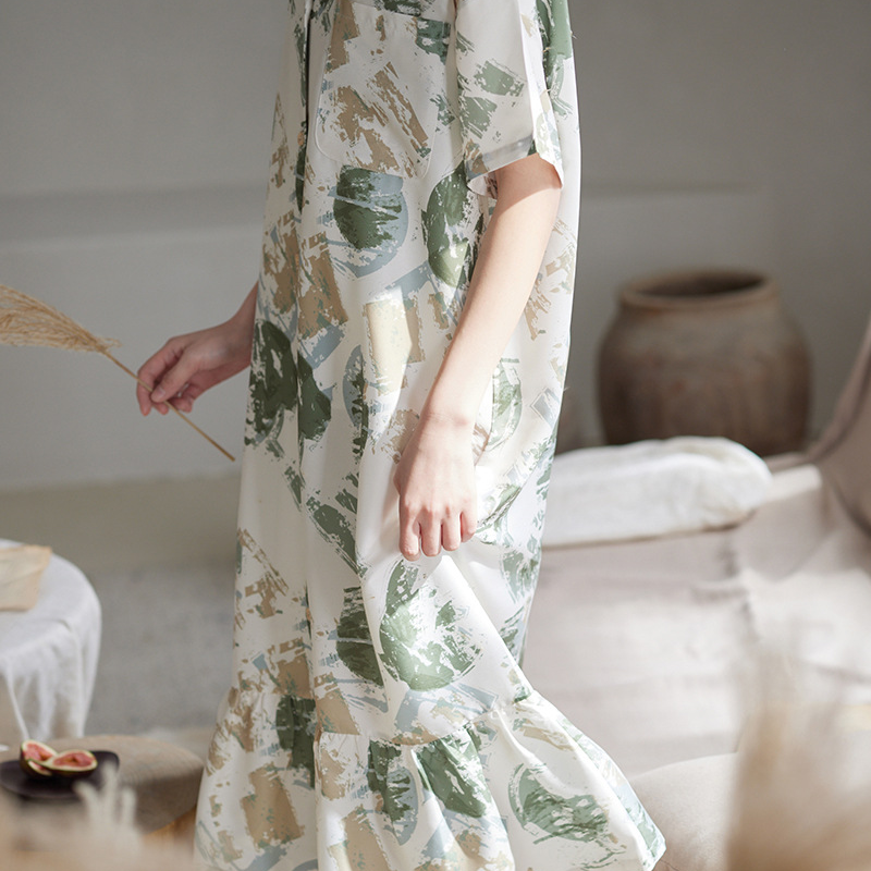 Cette chemise de nuit élégamment conçue allie style classique et douceur luxueuse, parfaite pour une nuit de sommeil réparatrice ou une matinée relaxante. Fabriqué à partir de soie satinée de haute qualité, il est lisse et doux au toucher et assure un confort maximal. Le design simple mais sophistiqué avec des manches courtes et une silhouette flatteuse convient à toutes les silhouettes.