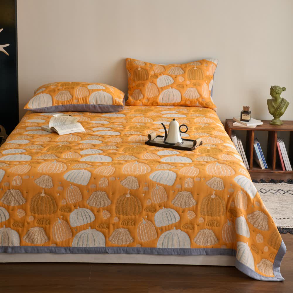 L'adorable motif citrouille donne à la couverture une touche saisonnière et est parfait pour l'automne et la saison des récoltes. Les couleurs chaudes et le design imaginatif en font un véritable accroche-regard. Grâce à sa conception unique à trois couches, cette couverture offre plus de chaleur et de douceur. Les couches ensemble forment un cocon douillet qui est doux pour la peau.