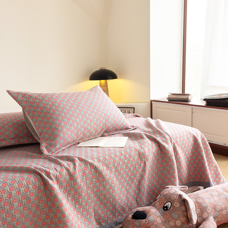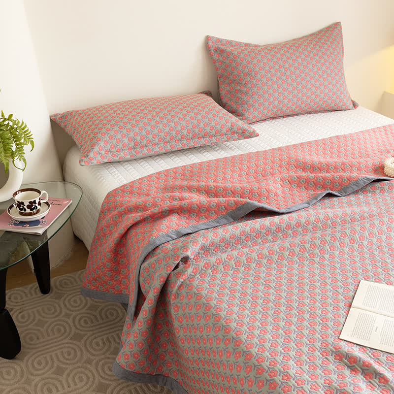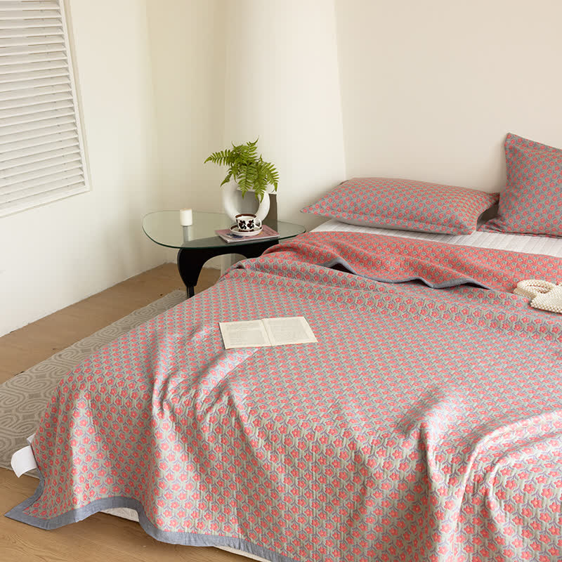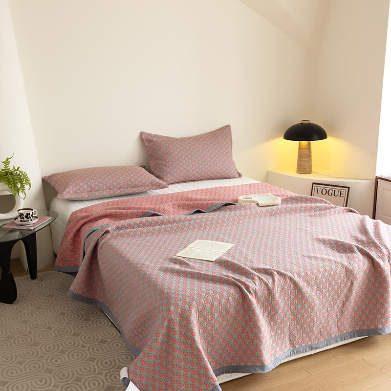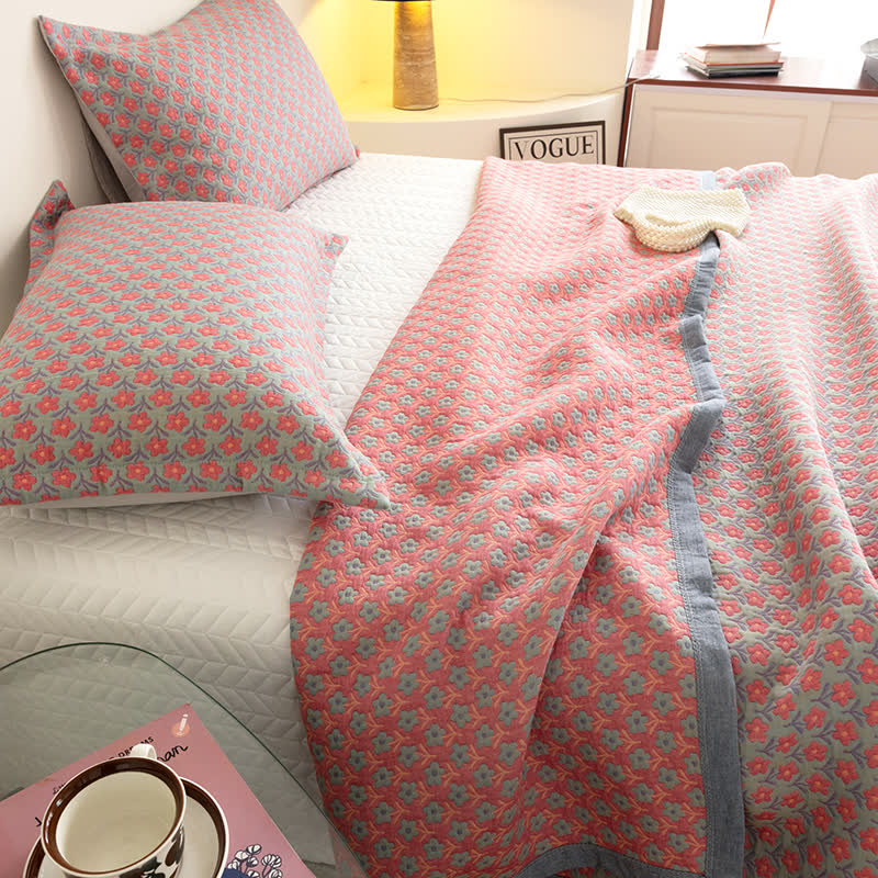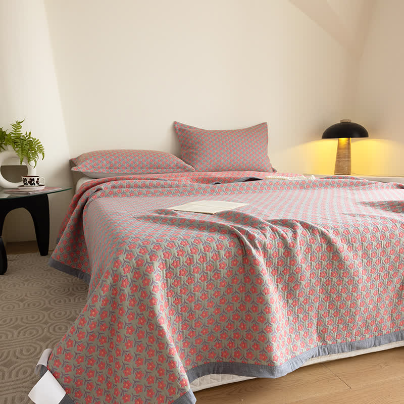 Cette courtepointe s'inspire du charme rustique et s'intègre dans une variété de styles d'intérieur. Fabriqué à partir de coton de haute qualité et de trois couches de gaze, il est hypoallergénique et luxueusement doux, offrant un confort respirant et léger pour toutes les saisons.