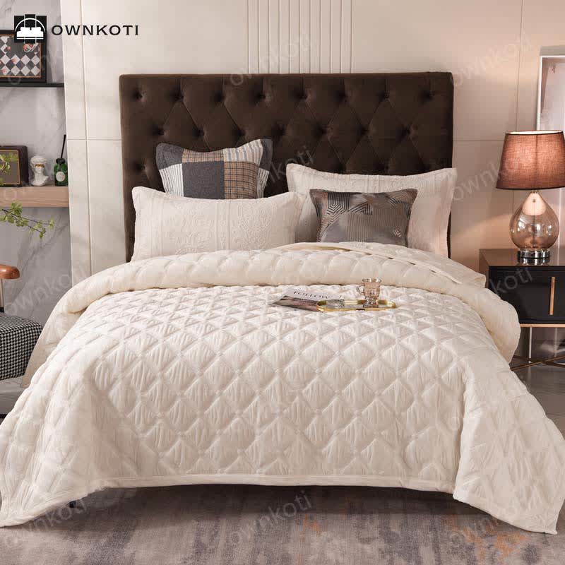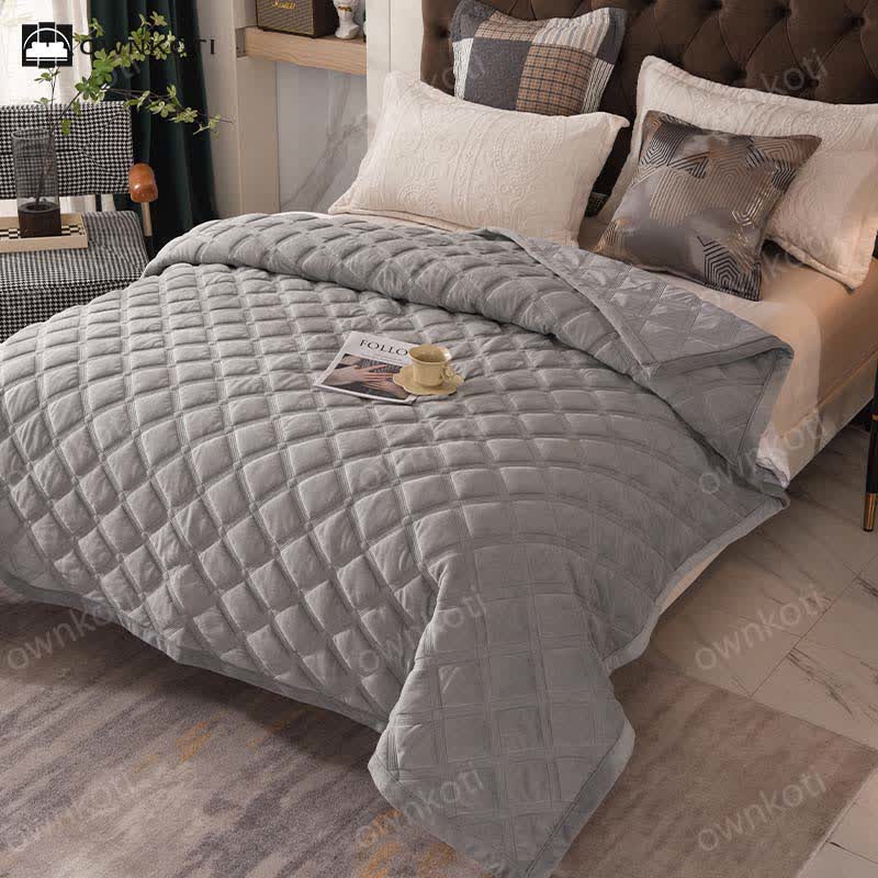 La couette minimaliste et unie ajoute de l'élégance à votre chambre et s'adapte sans effort à n'importe quel style d'intérieur. Il offre une esthétique claire et moderne. Il est idéal à superposer pendant les mois les plus frais ou à porter seul pendant les nuits plus chaudes, s'adaptant parfaitement à vos besoins saisonniers.