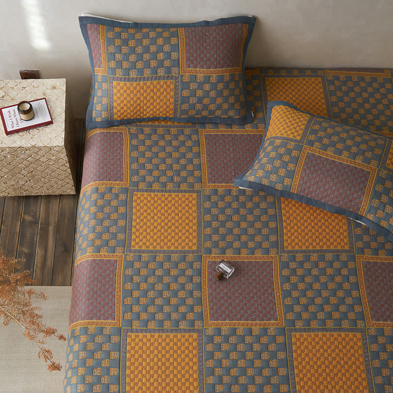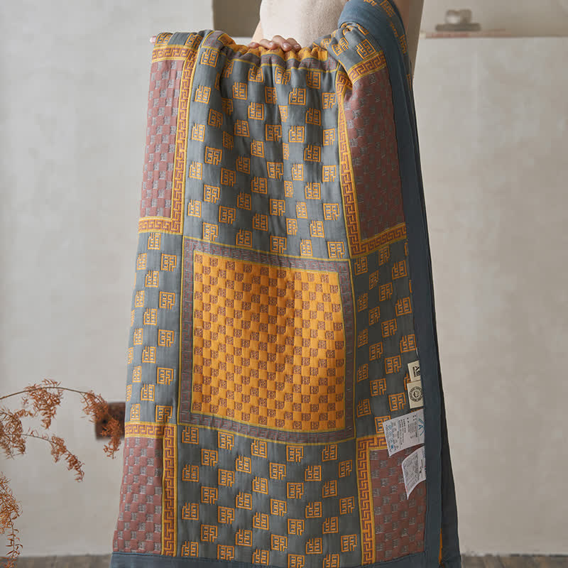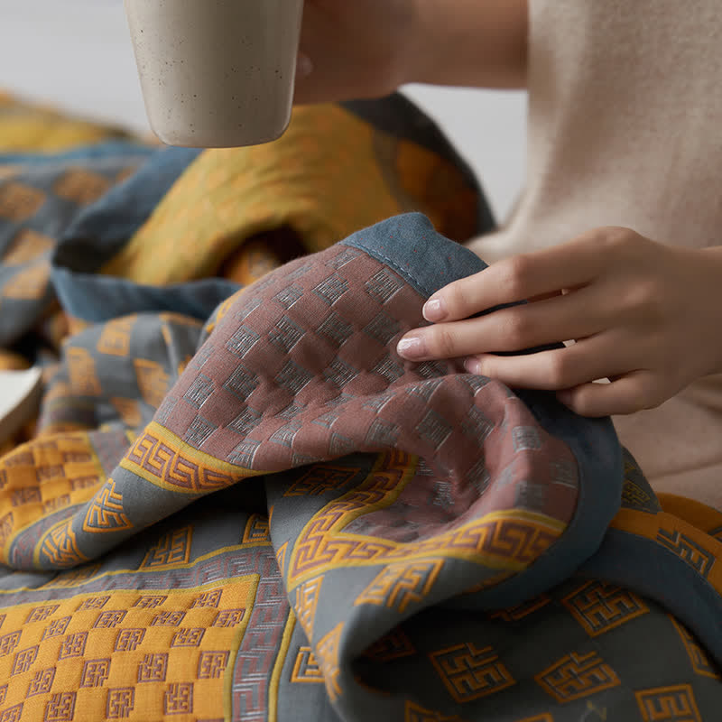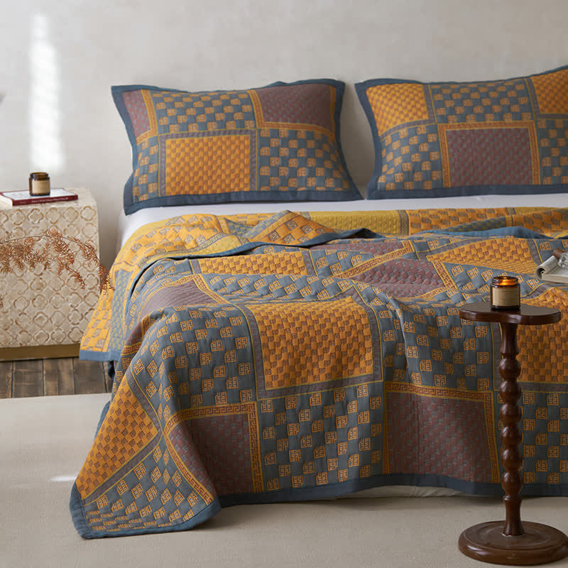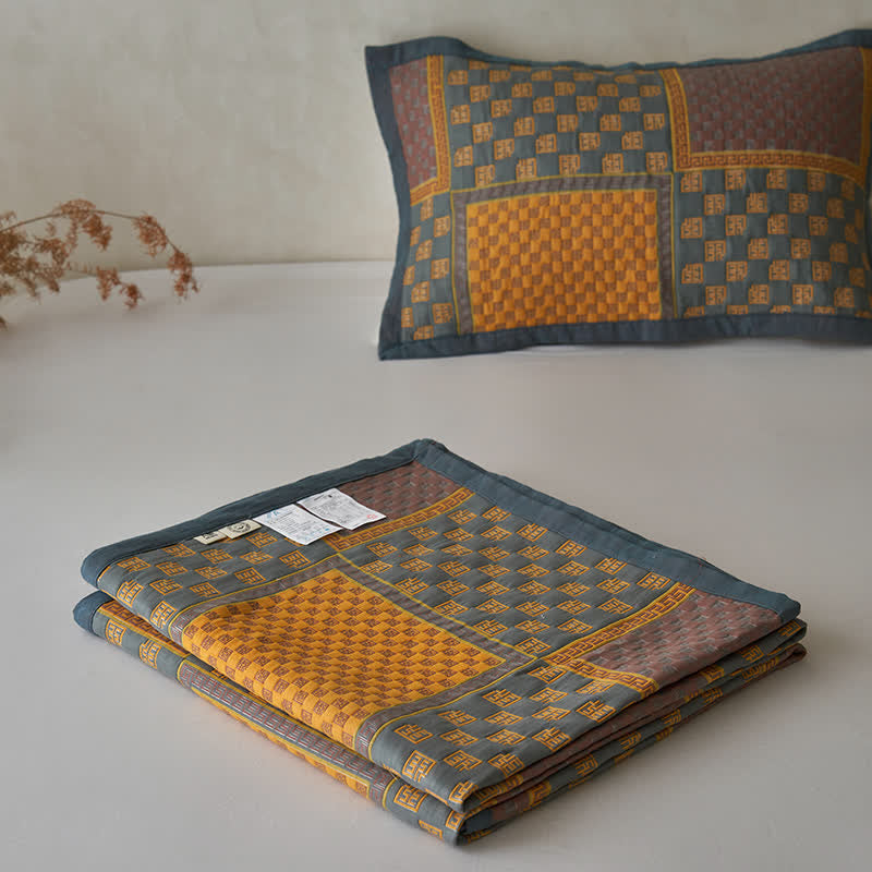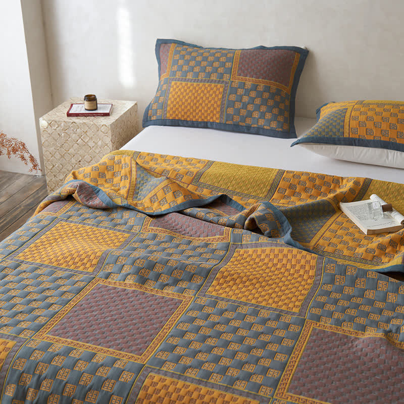 Couette en gaze de coton respirante avec imprimé carré rétro