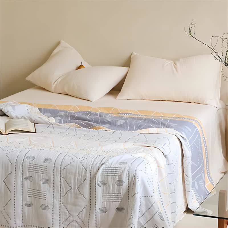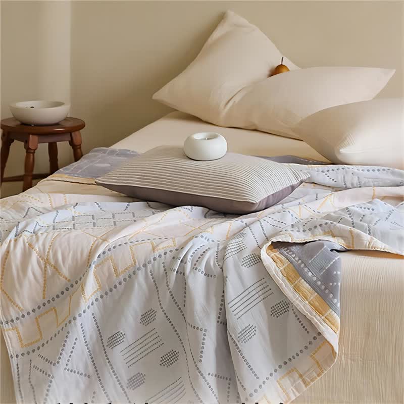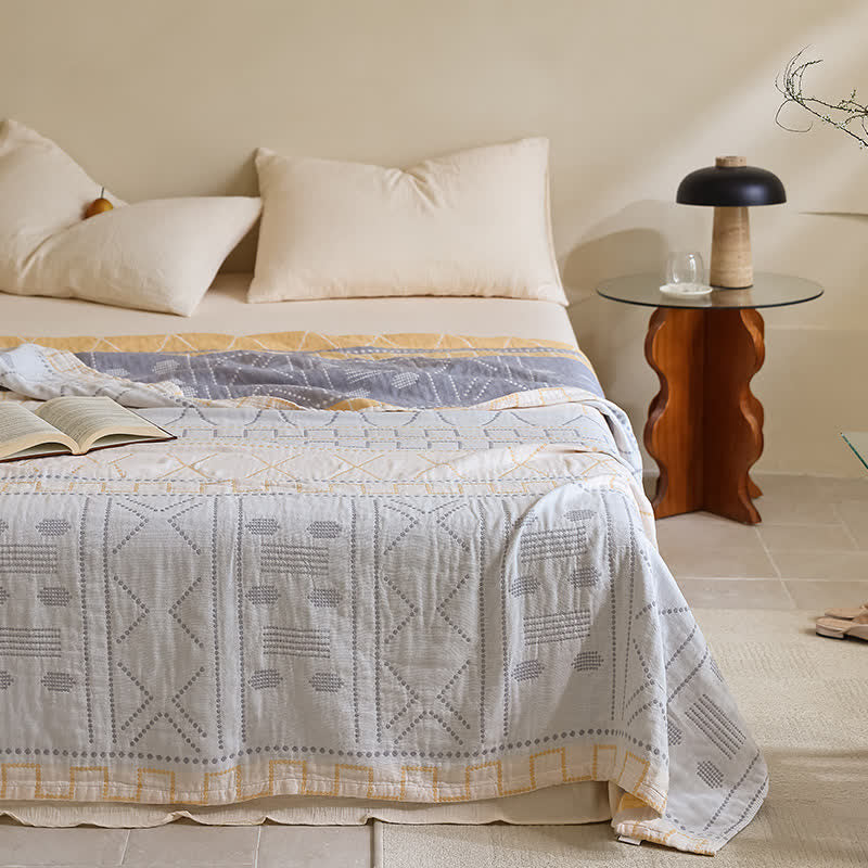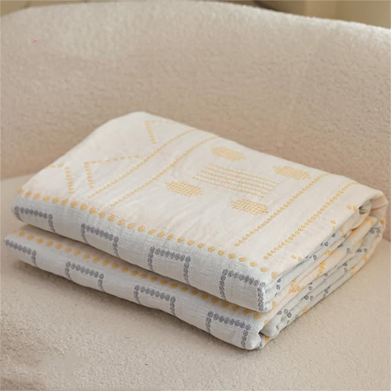 Cette couverture 100% coton est reconnue pour sa résistance au boulochage et à la déformation. Son drapé exceptionnel, sa texture tridimensionnelle, ses propriétés douces pour la peau et son excellente respirabilité le rendent particulièrement désirable. L'imprimé géométrique lui confère également une touche mode et élégante, ce qui en fait un choix simple mais élégant.