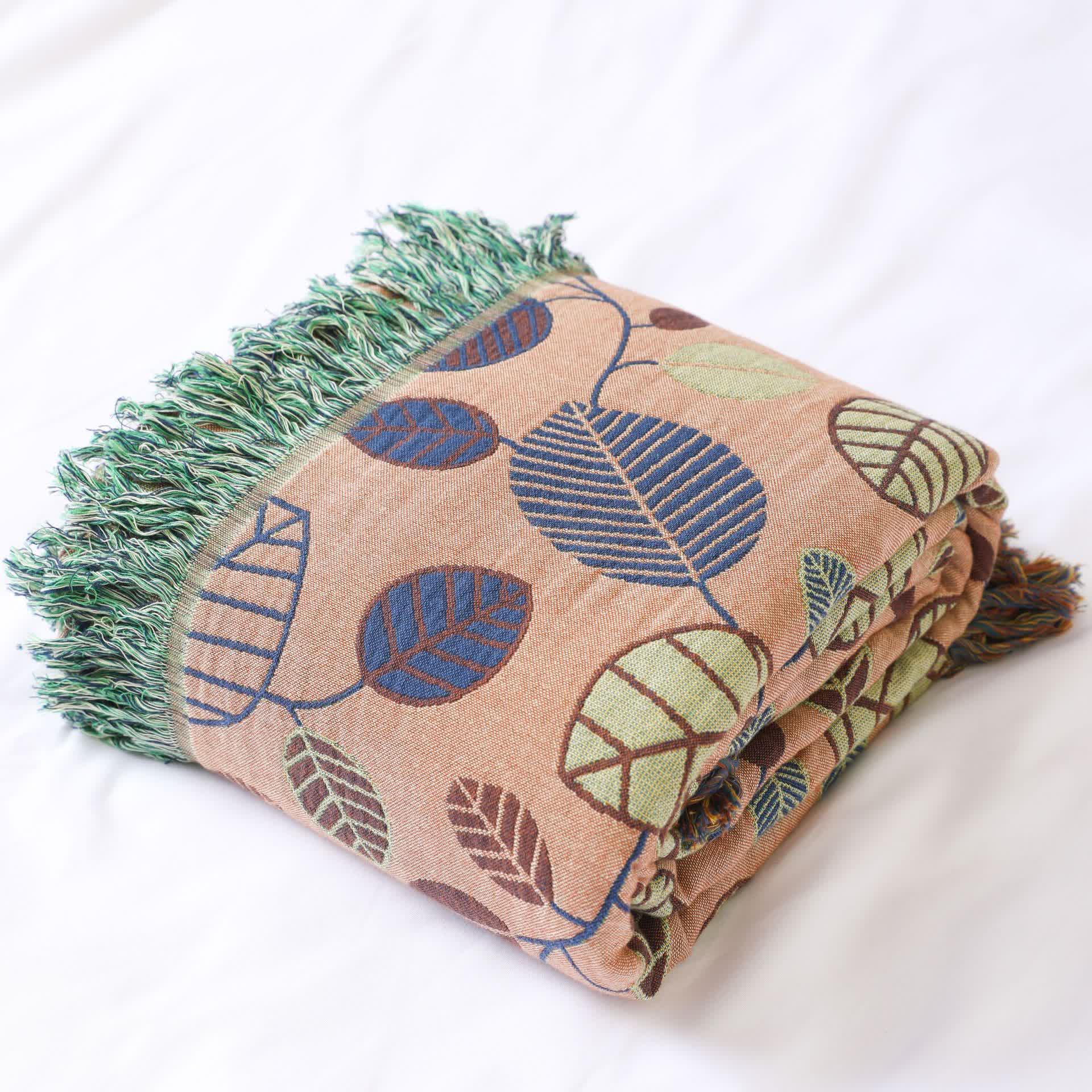 Cette courtepointe présente des motifs de feuilles exquis et un design réversible qui combine harmonieusement les styles rétro et classique, ajoutant charme et détente à votre espace de couchage. Il est fait de gaze de coton pur et est doux, respirant et chaud. Les coutures serrées des bords garantissent une longue durée de vie même après le lavage.