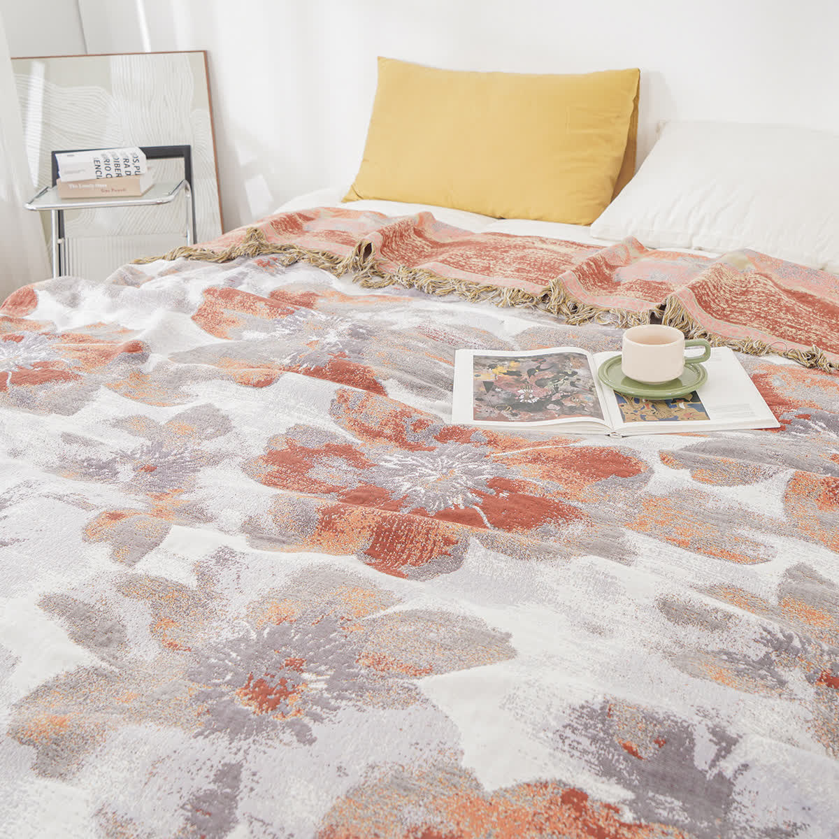 Couette réversible en gaze de coton à fleurs fleuries