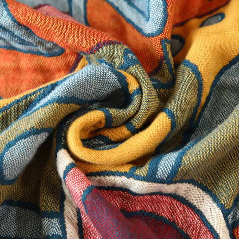 Couette réversible en gaze de coton avec motif floral artistique et pompons