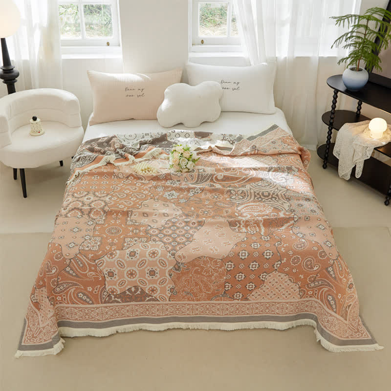 Fabriquée à partir d'un mélange homogène des qualités aérées du coton et de l'attrait exquis de la gaze, cette courtepointe offre un refuge tranquille pour se détendre lors des soirées fraîches et chaudes. Leur savoir-faire opulent offre un confort inégalé et une sensation légère et enveloppante qui vous enveloppe de chaleur tout en améliorant l'apparence de votre espace de vie.