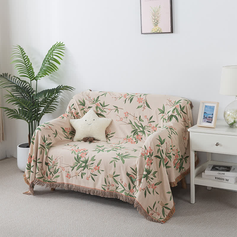 Couverture de canapé de campagne en gaze de coton avec pompon