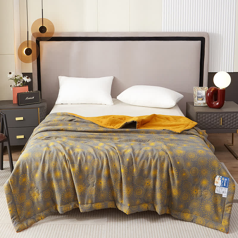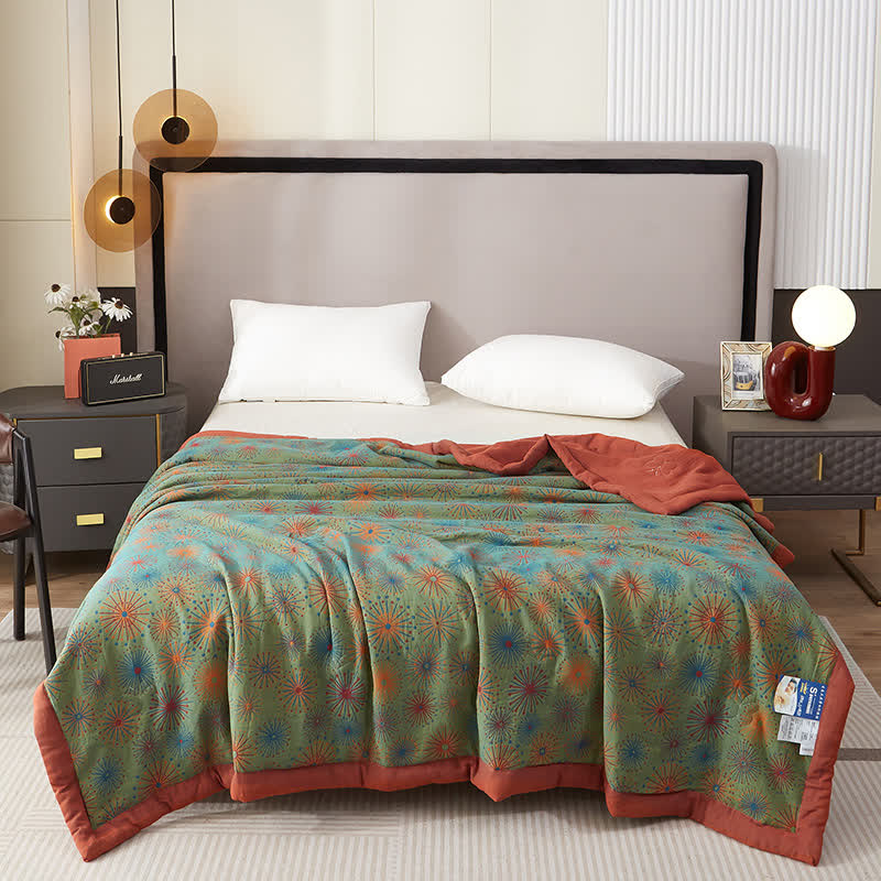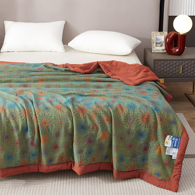 Confectionnée en gaze de coton douce et respirante avec une finition teintée en fil, cette courtepointe légère arbore un motif unique de feux d'artifice vintage pour une touche rétro ludique. Idéale pour les nuits chaudes, elle offre un confort frais et un style saisissant.