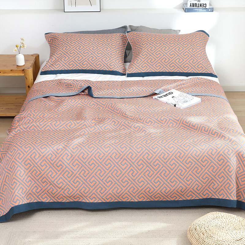 Cette couette convient comme couverture d'été ou comme drap de lit. La conception réversible double face assure une durabilité fiable lorsqu'elle est portée et lavée. L'impression réactive et la technologie Jacquard offrent une stabilité supplémentaire. Il peut être utilisé comme couverture de climatisation, couverture d'avion, couverture de chevet, couverture de canapé ou écharpe.