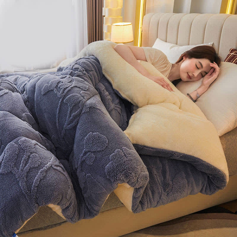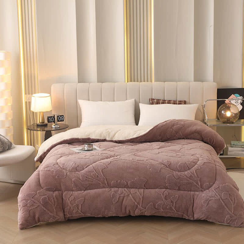 Couverture d'hiver avec feuille de ginkgo et âme matelassée