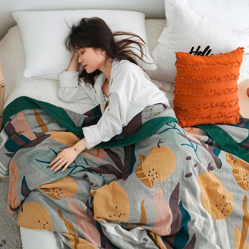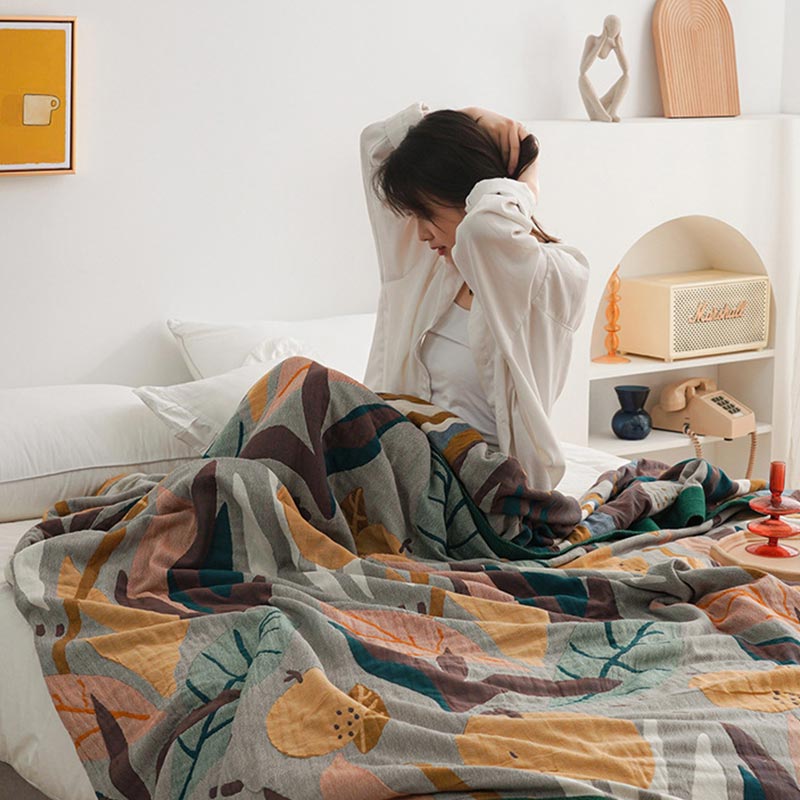 Couverture en coton léger et réversible à motif de fruits