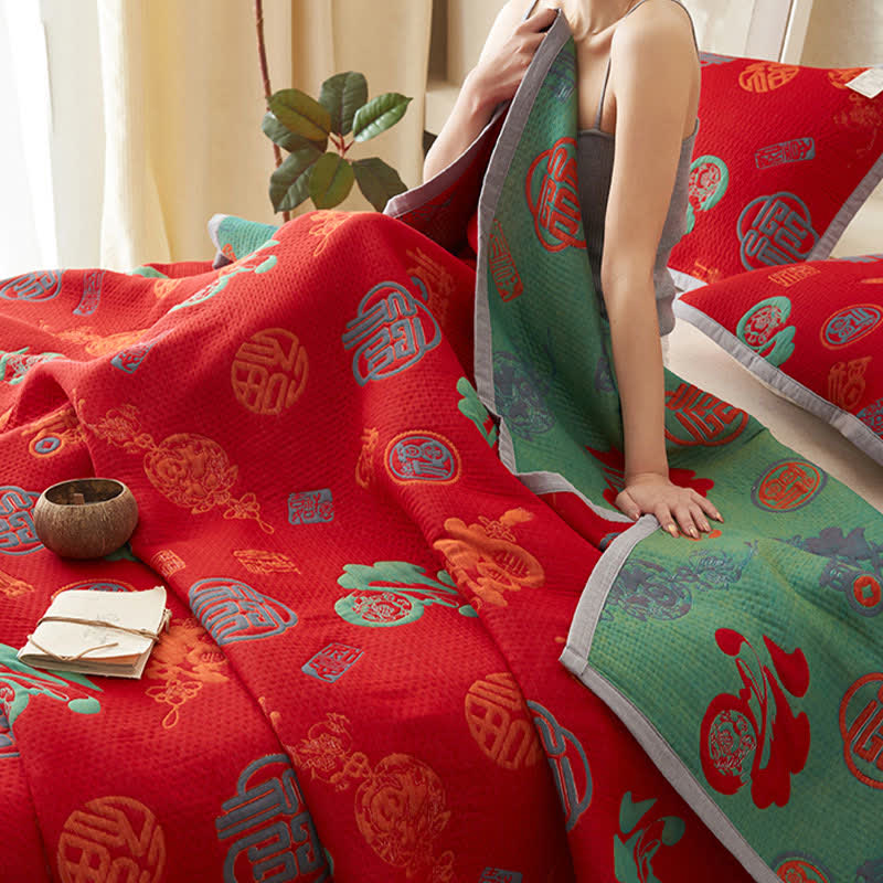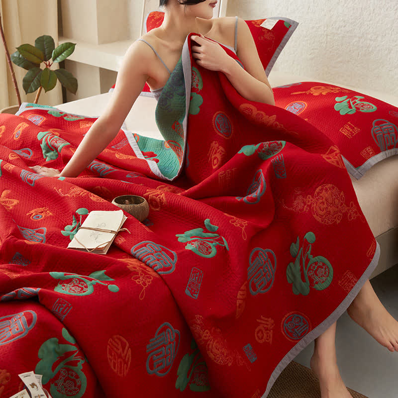 Couverture en gaze de coton pur à double épaisseur avec couette réversible de bon augure