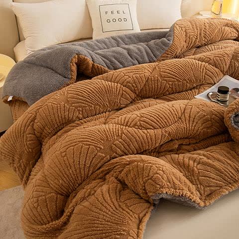 Couverture jacquard sherpa avec feuille de ginkgo et âme matelassée