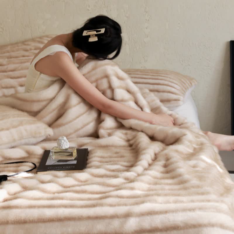 Ajoutez une élégance contemporaine à votre pièce avec ce jeté en fausse fourrure rayé moderne. Son design élégant offre esthétique et confort luxueux. La fausse fourrure de haute qualité offre une sensation douce et moelleuse et procure de la chaleur. Polyvalent pour n'importe quelle pièce, parfait pour recouvrir des canapés, des lits ou des chaises - un excellent ajout à la décoration de votre maison.