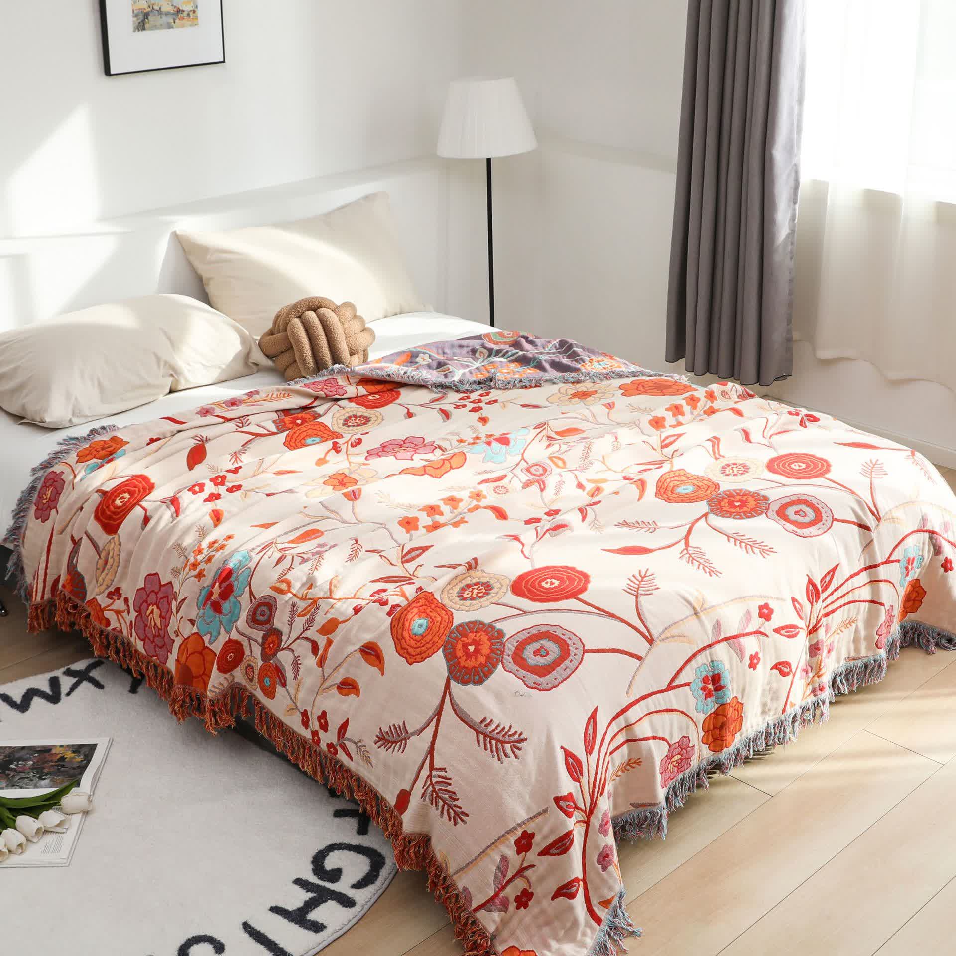 Couverture réversible confortable en gaze de coton avec motif floral vintage