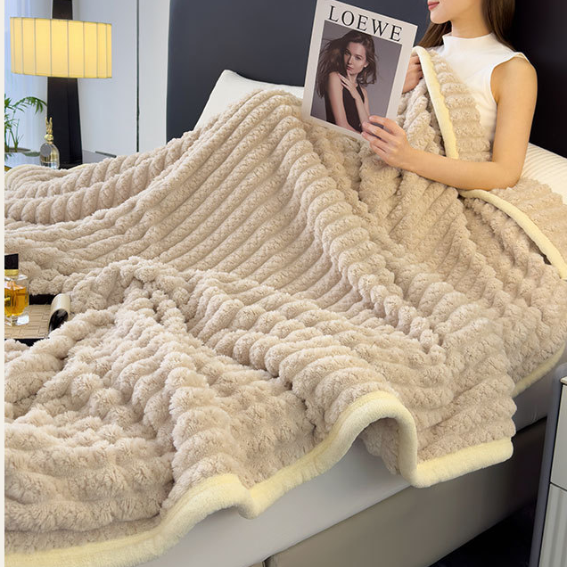 Cette couverture impressionne par son design monochrome chaleureux et élégant et est parfaite pour se blottir au lit, prendre un bain de soleil et se sentir bien au quotidien. Fabriqué en polaire microfibre haute densité, il retient efficacement la chaleur corporelle et empêche l'air froid de pénétrer. Sa forme tridimensionnelle ajoute une touche de superposition et de style à votre lit. Les fils conducteurs intégrés contribuent également à réduire l’électricité statique, garantissant une expérience de sommeil plus confortable.
