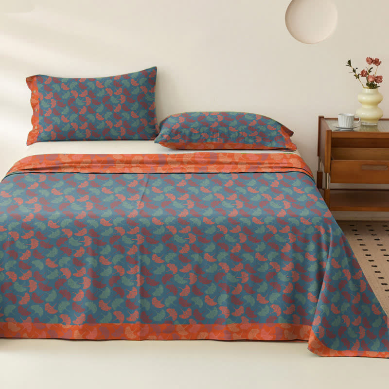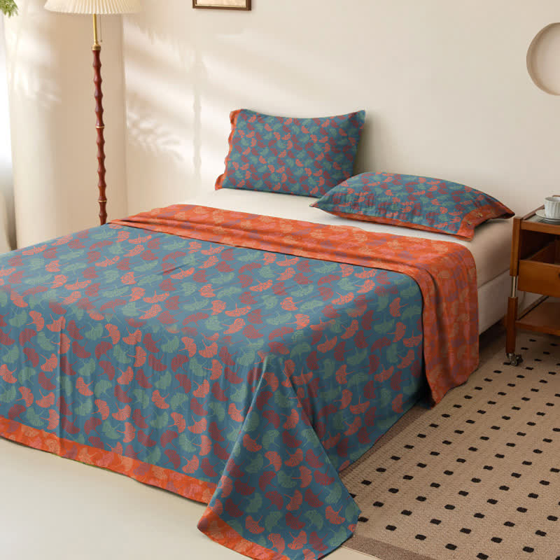 Couvre-lit en gaze de coton avec feuilles de ginkgo