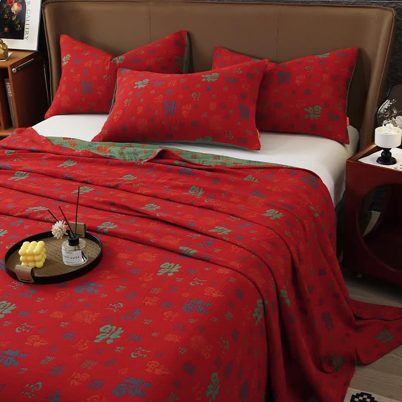 Ce couvre-lit exquis présente un motif jacquard complexe qui reflète un savoir-faire exceptionnel et une attention artistique aux détails. Soigneusement fabriqué à partir de deux couches de gaze de coton de haute qualité, il offre non seulement une sensation luxueusement douce contre la peau, mais impressionne également par sa durabilité inégalée, le rendant parfait pour un usage quotidien. La combinaison de motifs élégants et d'une construction robuste garantit que cette couette