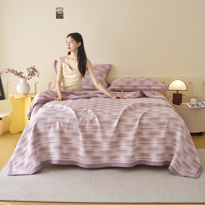 Le couvre-lit en mousseline de coton à rayures est confectionné en pur coton de haute qualité avec une finition mousseline. Ce motif à rayures symbolise la simplicité, l'ordre et la modernité. Ce couvre-lit est parfait pour ceux qui apprécient les designs simples et classiques et recherchent une literie légère, naturelle et élégante au quotidien.