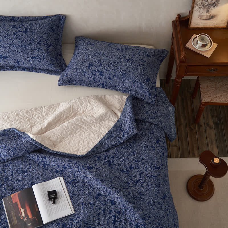 Couvre-lit matelassé en gaze de coton à motif cachemire vintage