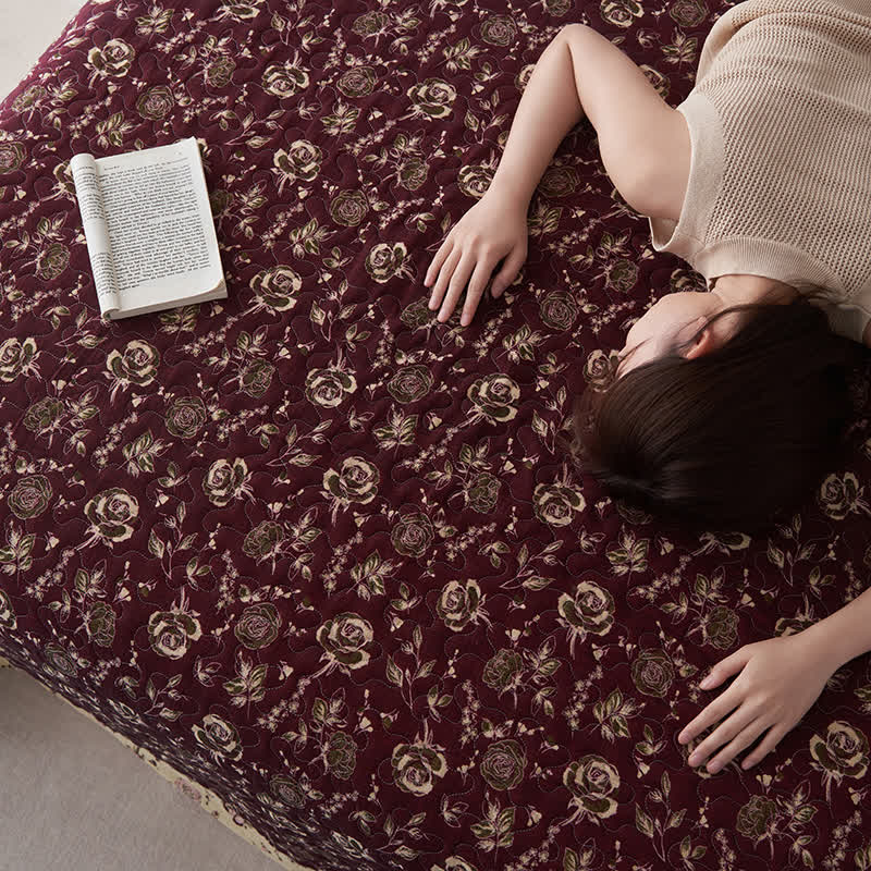 Couvre-lit matelassé en gaze de coton au motif rose rétro