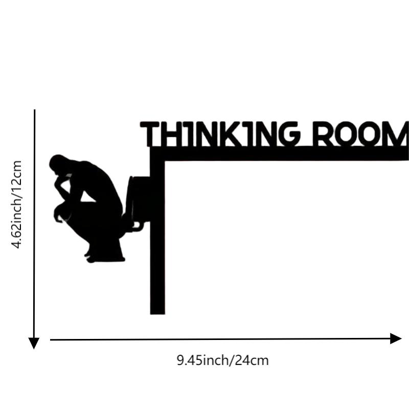 Verleihen Sie Ihrem Badezimmer mit die Türrahmenschild « Denkraum » une note witzige. Das Design mit der humorvollen Silhouette eines Denkers apporte sofort Persönlichkeit in Ihren Eingangsbereich. Idéal pour les salles de bains, les chambres d'hôtes, les cafés et les salles créatives.