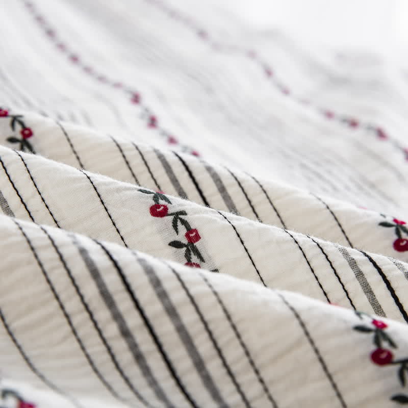 • Détail de broderie unique : met en valeur les petites broderies charmantes de baies/fleurs rouges sur les rayures et témoigne d’un savoir-faire de haute qualité et d’un design unique et rare.