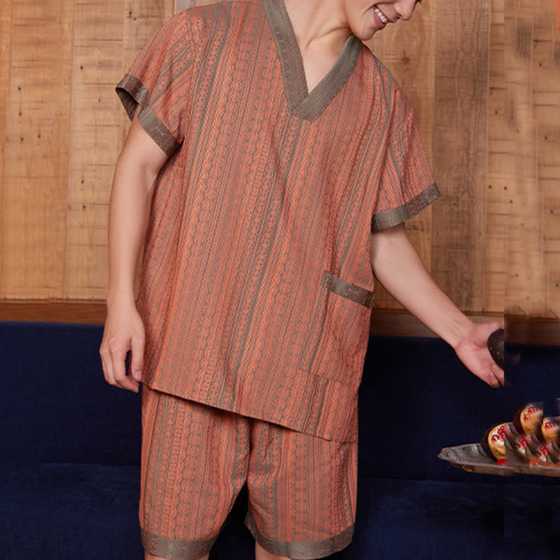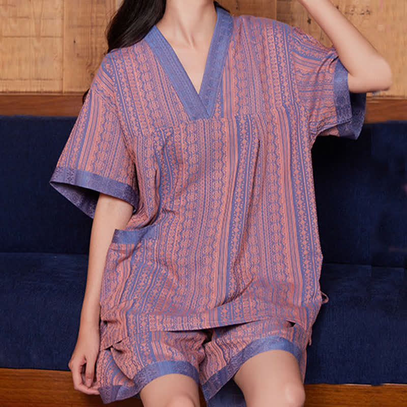 Ensemble de nuit en coton grande taille à col en V pour couple