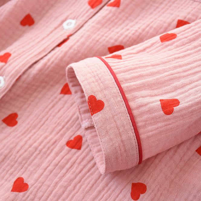 Ensemble de nuit en gaze de coton avec cœurs en jacquard