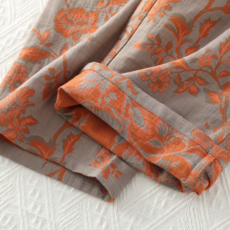 Agrémentez vos loisirs avec cet ensemble soigneusement confectionné en gaze de coton exceptionnellement doux et confortable. Avec son motif floral enchanteur, cet ensemble polyvalent est parfait pour se détendre à l'intérieur comme à l'extérieur et répondra à tous vos besoins de détente.